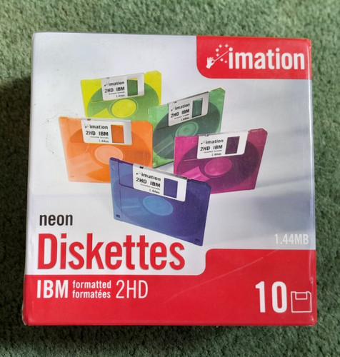 - Verkocht 8 okt 2025Imation Neon Floppy Diskettes IBM 1.44MB 2HD - 9 Pack NewNieuw (anders) | ZakelijkEUR 17,28Nu kopen+EUR 12,35 geschatte verzendkostenvan Verenigd KoninkrijkDouaneservices en internationaal traceren aangebodendant2701 99,5% positief (8,2K)